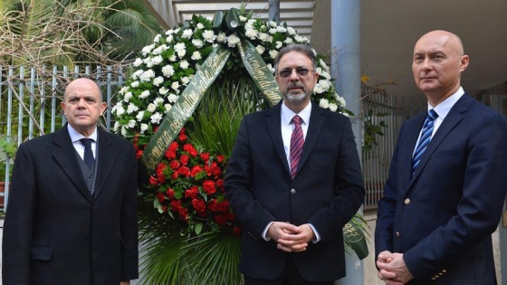 İtalya'nın başkenti Roma'da düzenlenen anma törenine, Dışişleri Bakanlığı Müsteşar Yardımcısı Büyükelçi Kaan Esener, Türkiye'nin Vatikan Büyükelçisi Prof. Dr. Mehmet Paçacı, Türkiye'nin Roma Büyükelçisi Murat Salim Esenli, NATO Savunma Koleji nezdinde Türkiye'nin Kıdemli Milli Temsilcisi Elçi Müsteşar Türker Arı, Kuzey Kıbrıs Türk Cumhuriyeti'nin (KKTC) Roma Temsilcisi Çimen Keskin ve Yunus Emre Enstitüsü Roma Türk Kültür Merkezi Müdürü Sevim Aktaş'ın yanı sıra Vatikan ve Roma Büyükelçiliği nezdinde görevli diplomatlar katıldı.