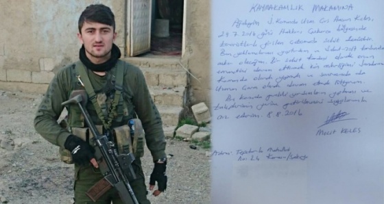 Şehit kardeşi Mecit Keleş yazdığı dilekçesinde, “Ağabeyim Jandarma Uzman Çavuş Hasan Keleş, 24 Temmuz 2016 günü Hakkari’nin Çukurca bölgesinde teröristlerle girilen çatışmada şehit düşmüştür. Ben de yoklamamı yaptırdım ve Şubat 2017’de asker olacağım. Bir şehit kardeşi olarak onun emanetini devam ettirmek için askerliğimi Jandarma Komanda olarak yapmak ve sonrasından da Uzman Çavuş olarak göreve devam etmek istiyorum. Bu konuda gerekli yardımların yapılması taleplerimin yerine getirilmesini arz ederim” ifadelerini kullandı.