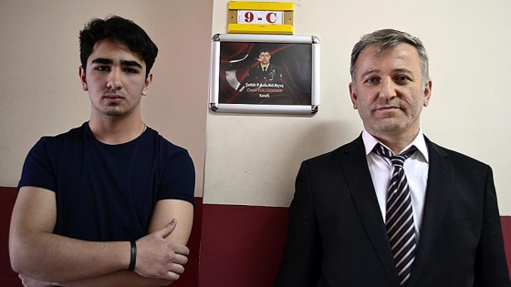Karabük'ün Safranbolu ilçesinde lise öğrencisi Ahmet Karabacak, 15 Temmuz darbe girişimi ile terör saldırılarında şehit olan asker ve polislerin hatırasını yaşatmak amacıyla, harçlıklarını biriktirerek hazırladığı fotoğrafları sınıf girişlerine astı.