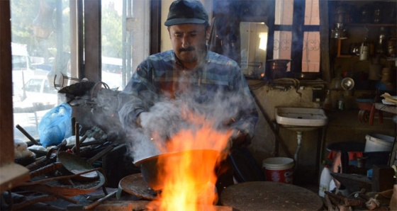 Asırlardan bugüne kadar sürdürülen mesleklerden olan bakır ustalığı 90’lı yıllardan bugüne teknolojinin de hızlı bir şekilde ilerlemesiyle unutulmaya yüz tutmuş durumda. Ramazan Kalay, bakır ustalığının Eskişehir’deki son temsilcisi. Öyle ki ailesinin bir asrı aşkın bir sürdürdüğü mesleği teslim edecek bir aile üyesi bile bulamamış. Yetiştirmeye çalıştığı çıraklarında sonradan bu mesleğe devam etmeme kararı aldığını vurgulayan Kalay, “45 senedir bu mesleği icra ediyorum, son 36 senedir ise külliyenin karşısındaki bu küçük dükkândayım. Biz atadan, dededen beri bakır işi ile uğraşırız. Bu sebeple soy ismimizi bile kalay koymuşlar. Yalnız bu meslek artık bitmek üzere. Düşünün artık benden yeni üretim ürün isteyen çok az, parmakla sayılacak kadar. Onlarda tencere gibi şeyler istemiyorlar, daha çok antika imbik ve ocak gibi şeyler ilgilerini çekiyor. Genelde tamir işi ile uğraşıyorum ya da getirilen bakır kapları kalaylıyorum. Çırak bulmakta bile zorlanıyorum, hiç kimse bu işte gelecek görmediği için bakırcılığı öğrenmek istemiyor. Bakırcılık aynı zamanda zor zanaat emek ve sabır gerektiriyor. Getirisini ve sarf ettiği çabayı karşılaştıranlar, bu meslekte devam etmemeyi tercih ediyor” dedi.