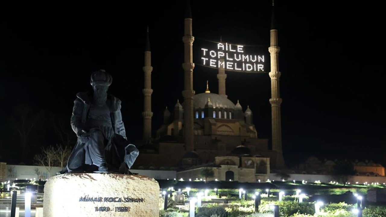 Edirne'deki Selimiye Camisi'ne, "Hoş geldin on bir ayın sultanı" yazılı mahyanın ardından ramazan ayının ikinci yarısı için "Aile Yılı"nı vurgulamak amacıyla "Aile toplumun temelidir" yazılı mahya asıldı.