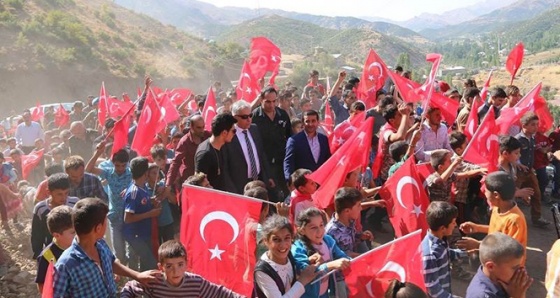 “Bu zorlu coğrafyada terör örgütü zorlasa da yaklaşamadı, o yüzden istediği hâkimiyeti kuramadı” diyen Vali Toprak, “Eski köyünüzün bulunduğu yerde de o zorlu yıllarda terör örgütünün çok daha güçlü şekilde devletimize, askerimize, milletimize saldırdığı dönemlerde de Üzümkıranlılar teröre geçit vermemişler. Bugünde yerleşmiş olduğunuz bu bölgede şehitler veriyorsunuz. Bütün her şeyinizi, canınızı, malınızı, mesainizi, devletimizin, milletimizin bekası için seferber etmiş durumdasınız. Devletimiz de bunun bilincinde. Başta Sayın İçişleri Bakanımız olmak üzere Sayın Başbakanımız, Sayın Cumhurbaşkanımız gerçekten Üzümkıran denildiğinde başka bir psikolojiye geçiyorlar, yüzlerinde başka bir sevgi oluşuyor. Bu zorlu bölgelerde gözünüzü budaktan esirgemeden bu terör örgütü denen şebekeyle mücadeleniz büyük takdir topluyor” diye konuştu.