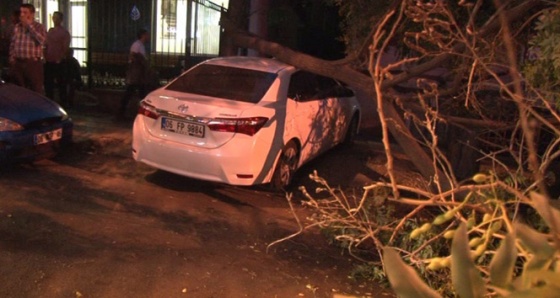 Seyir halindeki otomobilin üzerine ağaç devrildi