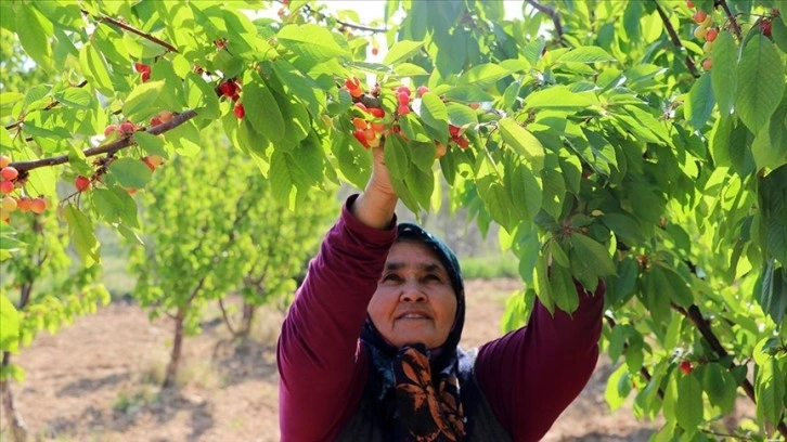 Bu yıl Manisa'da mart ve nisan aylarında etkili olan soğuk nedeniyle ilk kiraz, önceki sezonlara kıyasla yaklaşık 15 gün gecikmeyle Sancaklıbozköy Mahallesi'nde olgunlaştı.