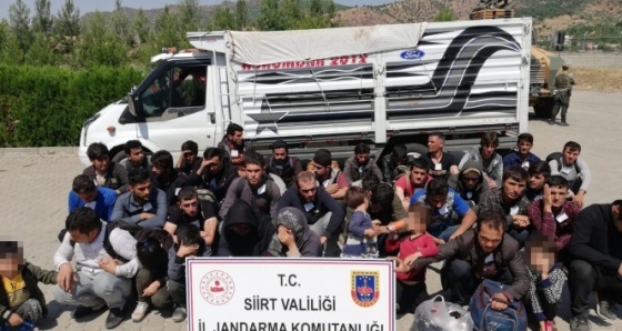 Siirt Valiliğinden yapılan açıklamada, Siirt İl Jandarma Komutanlığı KOM Şube Müdürlüğü ekiplerince, Bitlis ilinden Diyarbakır iline göçmen kaçakçılığı yapılacağı bilgisi elde edilmesi üzerine, Bitlis-Siirt karayolu Şekerim Yol kontrol noktasında yapılan aramada 40 göçmenin yakalandığı belirtildi. Açıklamada, “Yapılan kontrollerde; 6 Pakistan, 27 Afganistan, 1 Afrika, 6 İran vatandaşı olmak üzere toplam 40 yasa dışı düzensiz göçmen ve bunlara organizatörlük yaptığı değerlendirilen araç sürücüsü Ö.E. yakalanmıştır. Yasa dışı göçmenleri taşıyan araca 2918 sayılı Karayolları Trafik Kanunu ve 6458 sayılı Yabancılar ve Uluslararası Koruma Kanunu uyarınca idari işlem yapılmıştır. Söz konusu olayla ilgili olarak Baykan Cumhuriyet Başsavcılığına bilgi verilmiş ve alınan talimatlar doğrultusunda gerekli soruşturma işlemleri başlatılmıştır. Organizatör olduğu değerlendirilen bir şüpheli gözaltına alınmış, yakalanan yabancı uyruklu şahıslar ise işlemlerinin tamamlanmasına müteakip İl Göç İdaresi Müdürlüğüne teslim edilecektir” denildi.