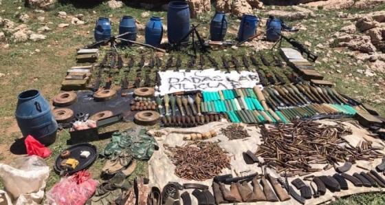 Açıklamada, ele geçirilen silah ve mühimmatlar arasında, bir adet MG-3 makineli tüfek, 31 adet Kaleşnikof tüfeği, bir adet G-3 piyade tüfeği, 2 adet Bixi makinalı tüfek, bir adet M-16 tüfeği, 3 adet Kanas keskin nişancı tüfeği, bir adet Mavzer tüfeği, 2 adet av tüfeği, 175 adet doçka mühimmatı, 550 adet uçaksavar mühimmatı, 10 bin 200 adet Bixi mühimmatı, 100 adet G-3 mühimmatı, 3 bin 750 adet Kaleşnikof mühimmatı, 6 adet antitank mayını, 3 adet antipersonel mayını, 21 adet el bombası, 15 adet 60 milimitrelik havan mühimmatı, 23 adet antitank roketatar mühimmatı, 63 adet roketatar sevk fişeği, 20 adet antipersonel roketatar mühimmatı, 2 kilogram dinamit lokumu, 10 kilogram C3 plastik patlayıcı, 2 adet akımölçer, 3 adet fayans çekici, 2 bin adet elektrikli fünye, 547 adet AK-47 mühimmatı, bol miktarda muhtelif yaşam malzemesi bulunduğu bildirildi.