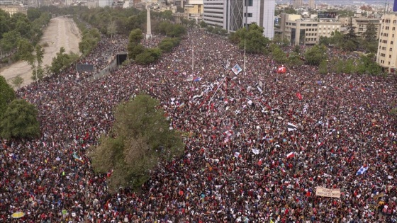 "Şili'nin tarihindeki en büyük gösterisi" adı verilen gösterilerde, başkent Santiago'da İtalya Meydanı'nı dolduran yüz binlerce kişi, Devlet Başkanı Sebastian Pinera hükümetini, ülkedeki hayat pahalılığını ve sağlık hizmetlerini protesto etti.