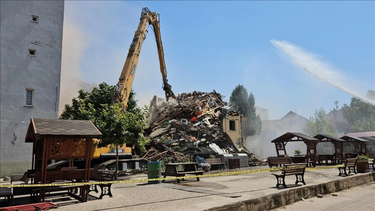 AFAD koordinesinde yürütülen çalışmalar kapsamında, riskli durumdaki binalar kontrollü şekilde yıkılıyor. İş makinelerinin eşlik ettiği çalışmalarda, güvenlik önlemleri alınarak çevredeki vatandaşların zarar görmemesi için alanlara girişler kısıtlandı.