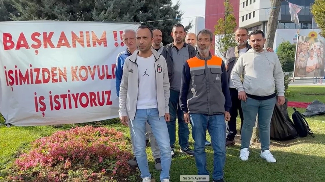 Belediyenin karşısındaki alanda toplanan işçiler, "Başkanım işimizden kovulduk, iş istiyoruz" yazılı pankart açıp, "Taşerona hayır" ve "İşimizi istiyoruz" şeklinde sloganlar attı.