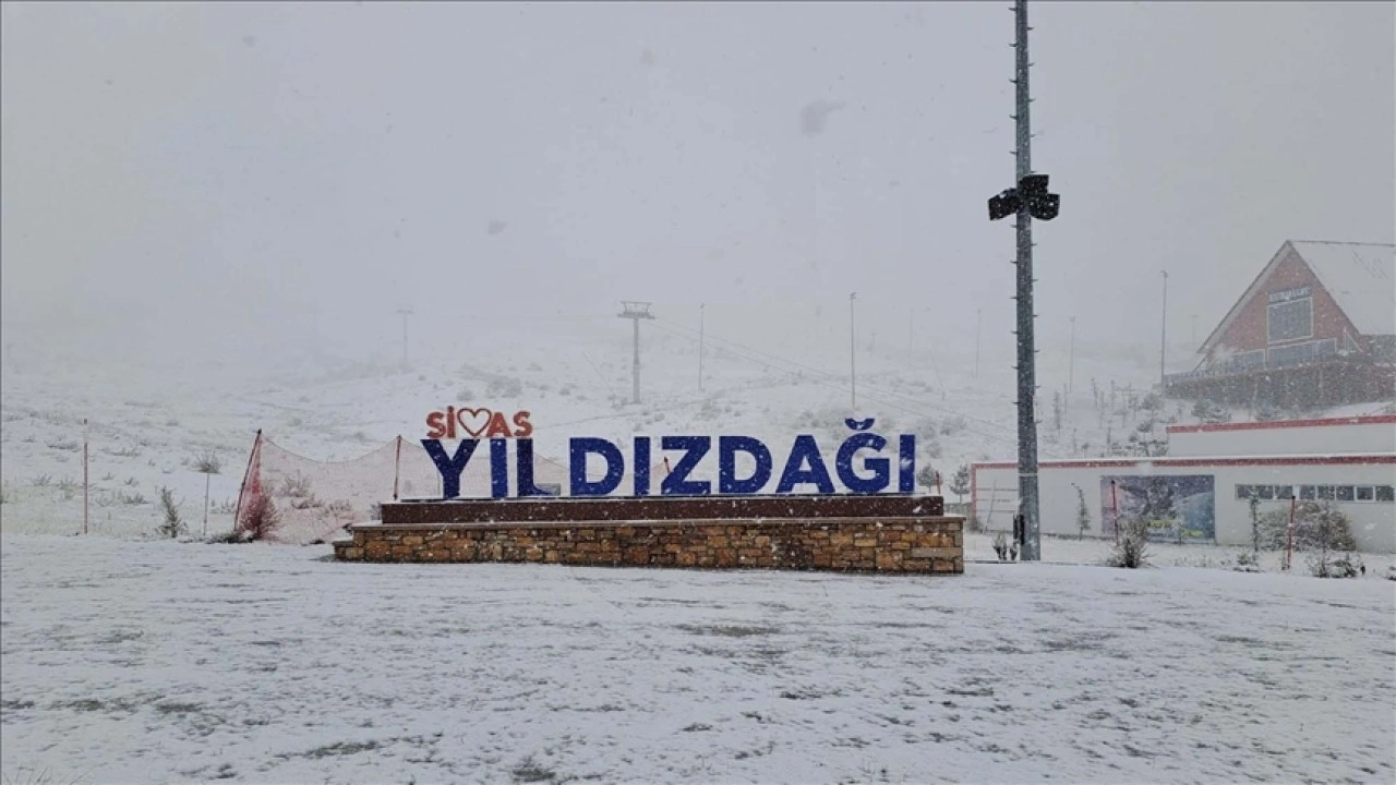Sivas'ta Yıldız Dağı Kış Sporları ve Turizm Merkezi'ne mevsimin ilk karı yağdı.