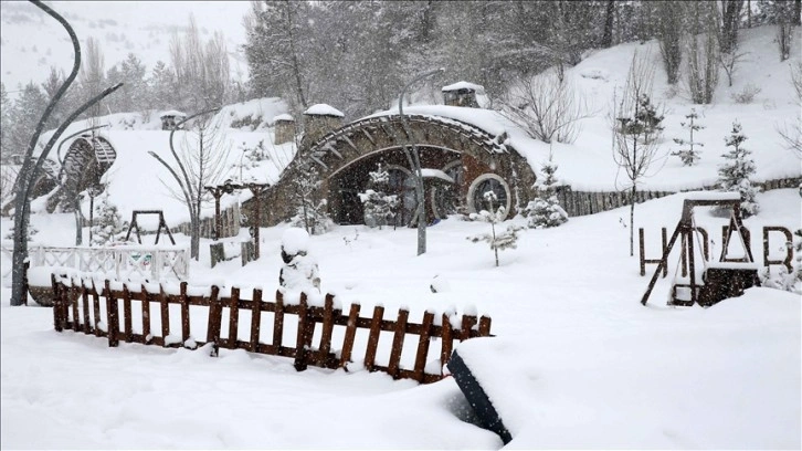 Sivas'ta "Yüzüklerin Efendisi" filmindeki "Hobbit Evleri"nden esinlenerek inşa edilen yamaç evleri ve çevresinde, kar yağışıyla güzel görüntüler ortaya çıktı.