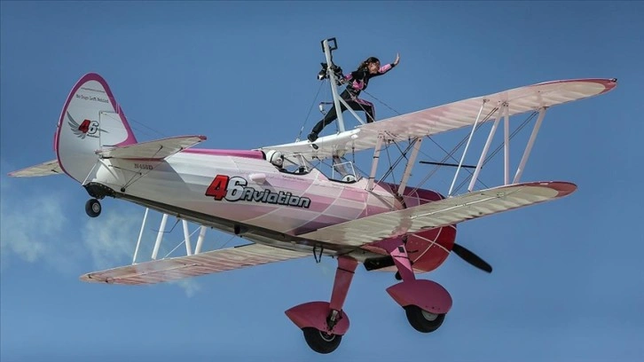 İsviçreli Danielle Del Buono, uçuş sırasında pilot Emiliano Del Buono kontrolündeki Boeing Stearman tipi uçağın kanadında yürüdü.
