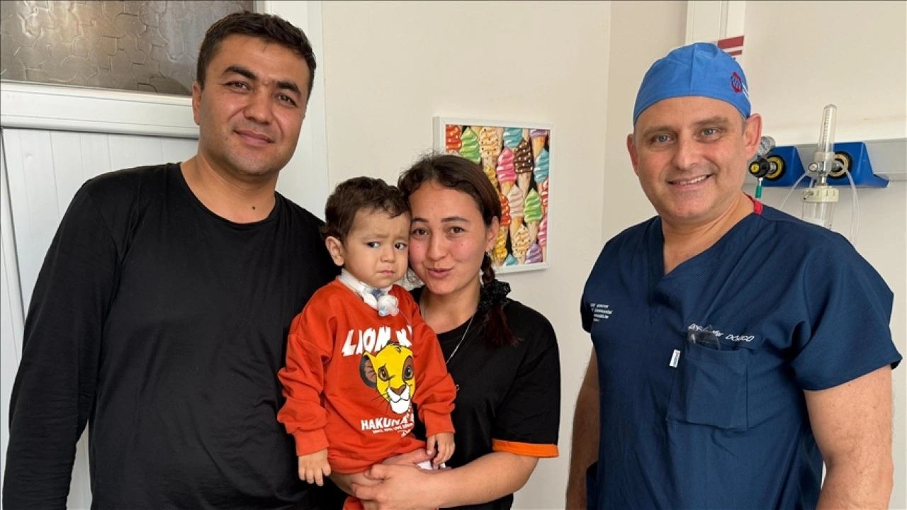 Özbekistan'daki ameliyatlar sonucu yemek borusu iptal edilen ve karnına konulan tüp aracılığıyla beslenmeye başlayan bebeğin solunumunu da cihaza bağlı olarak gırtlağından yapması sağlandı.
