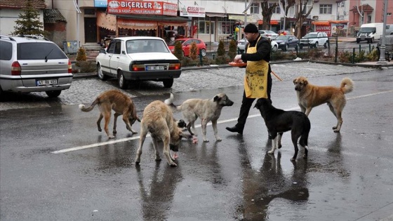 Yozgat'ın Saraykent ilçesinde bir esnaf, iş yerinden çıkan tavuk artıklarıyla sokak hayvanlarını besliyor.