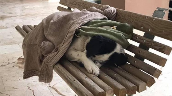 Adapazarı ilçesi Vali Mustafa Büyük Kız Anadolu İmam Hatip Lisesi'nde okuyan 10-B sınıfı öğrencisi Sümeyye Yılmaz, okul bahçesindeki bankta soğuktan korunmaya çalışan sokak köpeğine üzerindeki hırkasını örttü.
