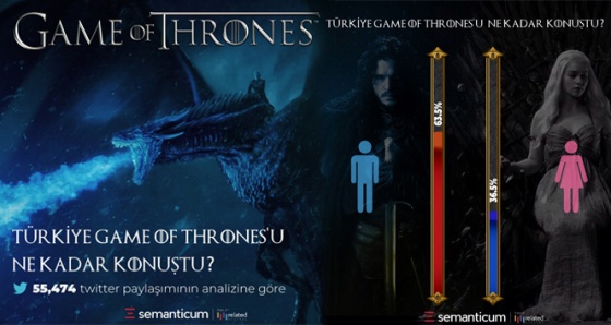 Dijital pazarlama teknoloji ve servis sağlayıcısı Related Digital'in çatısı altında yer alan sosyal medya ve internet analiz şirketi Semanticum da dizinin yayınlandığı gün yaptığı analiz ile sosyal medyada Game of Thrones'un nabzını tuttu.