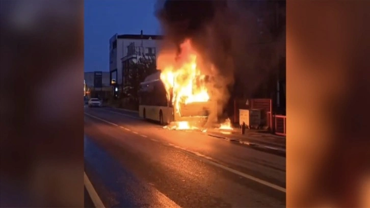 İtfaiye ekiplerinin müdahalesiyle söndürülen yangında İETT otobüsü kullanılamaz hale geldi.