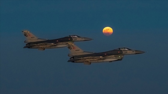 Milli Savunma Bakanlığının Twitter hesabından "Ay da tutulsa, Süper Ay da olsa onlar hep orada" ifadesiyle paylaşılan fotoğrafta, F-16'lar ile "Süper Ay" beraber yer aldı.