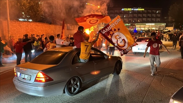 Bilecik'te Galatasaraylılar, galibiyetlerini kent merkezinde kutladı.