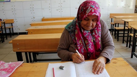 Konya Seydişehir'de yaşayan Remziye Bilen (70), İlçe Halk Eğitim Merkezi'nde açılan kursta okuma yazmayı öğrendikten sonra şimdi de aynı merkezde açılan ortaokula başladı.