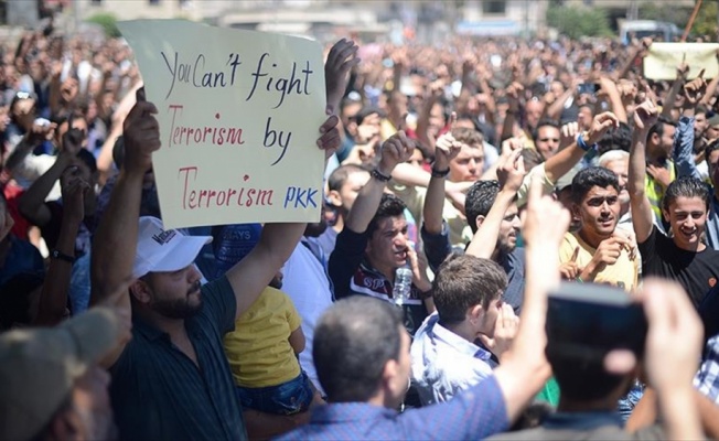 Terör örgütü PKK/PYD karşıtı sloganlar atan göstericiler, Türk Silahlı Kuvvetlerin Suriye'nin kuzeyde olmasından memnun olduklarını dile getirdi.