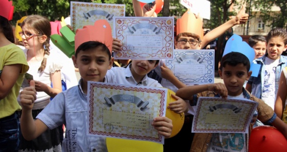 Suriye’deki iç savaştan kaçarak Gaziantep'e gelen yaklaşık 350 bin Suriyeli yaşıyor. Suriyeli çocukların eğitimi için Bakanlık ve Milli Eğitim Müdürlüğü birçok adım atarak, eğitim gören Suriyelilerin sayısını arttırmaya çalışıyor. Bu doğrultuda Gaziantep'te bulunan 52 geçici eğitim merkezinde yaklaşık 55 bin Suriyeli eğitim görüyor. Eğitim gören yaklaşık 55 bine yakın Suriyeli bugün karnelerini aldı. Suriyeli öğrencilere karnelerini dağıtan Gaziantep İl Milli Eğitim Müdürü Vasıf Munis, "Görevimiz ilimizdeki Suriyeli çocukların eğitimiyle ilgili ihtiyaçlarını düzenlemektir. Gaziantep dört yıldır Suriyeli misafirlerini ağırlamaktadır. Bunların başında gelen eğitim ihtiyacını da İl Milli Eğitim Müdürlüğü olarak üstlenmiş bulunuyoruz. Şu anda ilimizde 52 geçici eğitim merkezinde 55 bine yakın Suriyeli öğrencimiz eğitim imkanından yararlanmaktadır. Bu da ilimizde yaşayan Suriyeli öğrencilerin yüzde altmışına tekamül etmektedir. Hedefimiz hiçbir öğrencinin dışarıda kalmamasıdır. İl müdürlüğü olarak önümüzdeki yılın çalışmasına başladık. Ülkemizin gösterdiği misafirperverliği eğitime de yansıtıp kardeşçe çocuklarımız beraber yaşayacaktır. Okullarımızda Arapçanın yanında 5 saat Türkçe eğitimi de verilmektedir" diye konuştu.