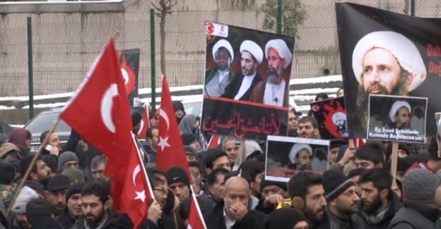 Çeşitli terör suçlarından hüküm giyen aralarında Şii din adamı Ayetullah Nemr Bakır en-Nemr’in de bulunduğu 47 kişinin dün Suudi Arabistan’da idam edilmesini protesto eden Dünya Caferi Alimleri Birliği üyesi kalabalık grup konsolosluk yakınında bulunan otoparkta toplandı. Konsolosluk önünde ve çevresinde güvenlik önlemi alan çevik kuvvet ekiplerinin grubun konsolosluk önüne yerleştirdiği bariyerler ile grubun konsolosluğa yaklaşmasına izin verilmedi. Ellerinde Türk bayrakları ve dövizlerle birlikte konsolosluk önüne gelen grup üyeleri, sloganlar attı. Kur’an-ı Kerim okunmasının ardından Dünya Caferi Alimleri Birliği Başkanı Hasan Karabulut kalabalığa hitap etti.