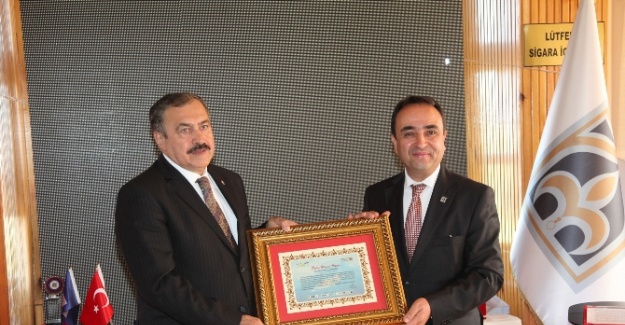 Konuşmaların ardından Bakan Eroğlu’na Türk Dünyası Mühendisler ve Mimarlar Birliği Başkanı Akif Özkaldı tarafından ‘Suyun Sinan’ı plaketi verildi.