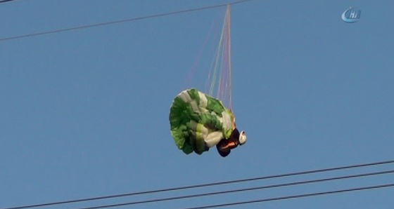 Edinilen bilgiye göre, ilçeye bağlı Amanos dağı eteklerinde bulunan Karafakılı Çınarcık mevkisinden yamaç paraşütü yapmak için çıkan Salih Fıstık (30), rüzgarın da etkisiyle bölgedeki yüksek gerilim hattına takıldı. Fıstık’ın haber vermesi üzerine olay yerine jandarma, AFAD, itfaiye ve 112 Acil Servis ekipleri sevk edildi.