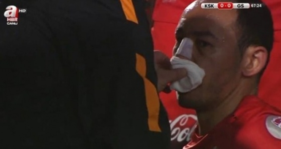 Galatasaray'ın tecrübeli futbolcusu Umut Bulut burnu tam iyileşmemiş olmasına rağmen dün oynanan Karşıyaka maçında yine talihsiz bir sakatlık yaşadı.Gol atamadığı için haftalardır eleştirlere maruz kalan Bulut, önemli bir pozisyonda Karşıyakalı futbolcu ile çarpışarak yerde kaldı ve burnu kanamaya başladı. Galatasaraylı oyuncunun gözyaşları ise dikkatlerden kaçmadı.Tecrübeli futbolcu o müdahalenin ardından dün akşam oynanan Türkiye Kupası maçına maske ile çıktı.