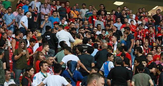 Daha sonra meşale yakan taraftarı tribünden almak isteyen polis memuruna, tribünde bulunan taraftarlar müsaade etmedi. Bunun üzerine olayın yaşandığı tribüne çok sayıda polis ekibi gelirken, meşaleyi yakan taraftar gözden kayboldu. Bir süre polisler ile taraftarlar arasında arbede yaşanırken, taraftarların yerlerine oturmasıyla olay büyümeden kapandı.