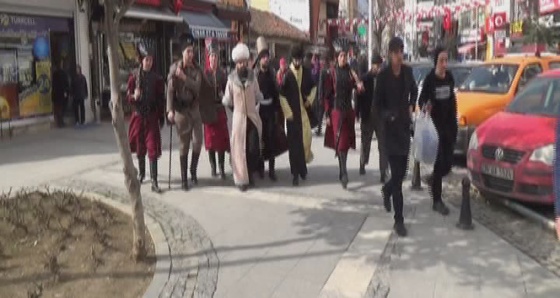 İzleyenleri tarihi yolculuğa çıkaracak olan Evvel Zaman isimli oyunu davetiyelerini de dönem kostümleri ve şahsiyetleri ile birlikte takdim eden Solmaz ve ekibi; Mustafa Kemal Atatürk, Fatih Sultan Mehmet, Mevlana ve yeniçeriler ile birlikte Silivri sokaklarında tarihi esintiler yaşattı.