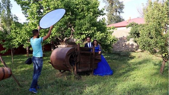 Fotoğrafa olan tutkusu nedeniyle otantik bir ortam yaratmak adına bahçede böyle bir çalışma gerçekleştirdiğini aktaran Özcan, "Dedemden, eski insanlardan topladığım malzemelerle burayı donattım. Yoğun ilgi var, günde en az 3-4 çekim yapıyoruz. Bahçeye bayağı kalabalık uğruyor, çaylarımız demleniyor. Her gün buraya ziyarete gelen insanlar var. Özellikle yeni evlenecek çiftler ilk olarak dış çekim için buraya geliyorlar, bahçe gün içinde sürekli dolu oluyor." diye konuştu.