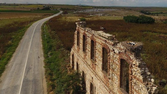 Bölgede pek çok çam ağacı, elektrik direği üzerindeki yuvaların yanı sıra tarihi hastanenin yadigar kalan tek duvarında da her geçen yıl leylek yuvası artıyor.