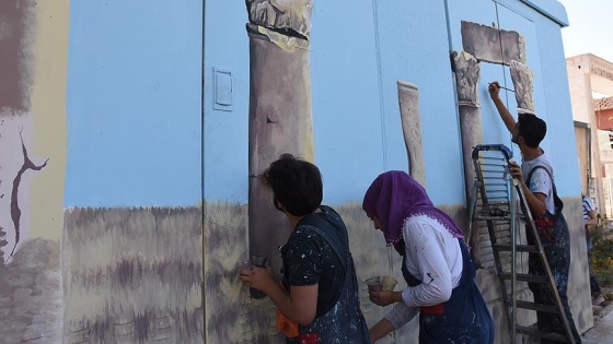 Mardin'de, görevlendirme yapılan Nusaybin Belediyesi, tarihi ve doğal güzellikleri trafo duvarlarına işledi.