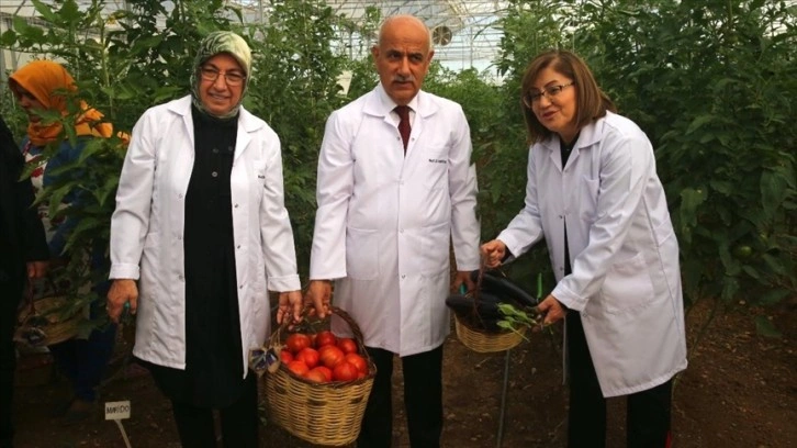 Kirişci, okulun sera alanında inceleme yaptıktan sonra eşi Hanife Kirişci'yle beraber domates ve patlıcan hasadı yaptı.