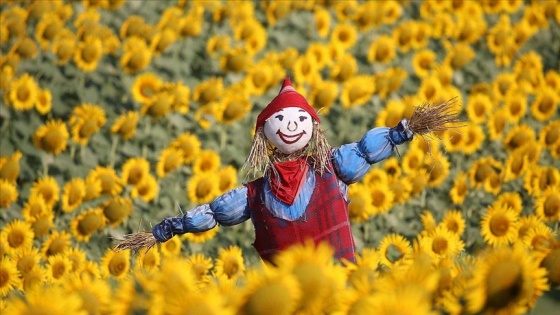 Gürses, ayçiçeklerinin her zaman neşe saçan bitkiler olması nedeniyle hazırladığı korkulukları da güleç yaptığını belirtti.