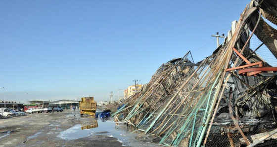 Bugün sabah saat 05.00 sıralarında Hal Kompleksi içinde bulunan boş plastik kasaların istiflendiği ve 18 deponun bulunduğu dükkanlarda henüz bilinmeyen nedenle yangın çıktı.
