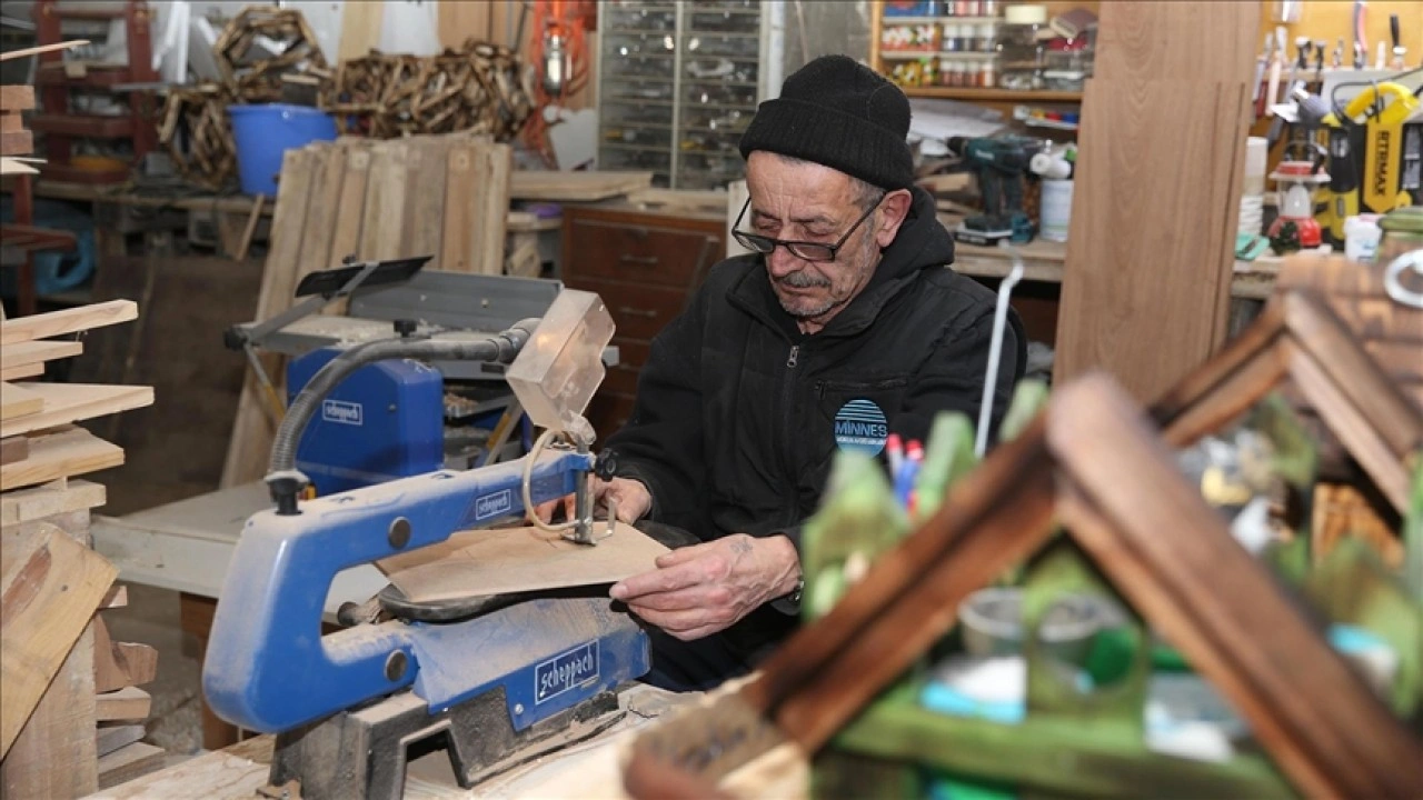 "Sabah 8'den gece 12'ye kadar bir aşk gibi bu işle uğraşıyorum. Gelinim de bana yardımcı oluyor. Yaptığım ürünlerin hiçbirinde kopya yok. Hepsi kendi tasarımlarım. İlk önce bu işe 3 metrekarelik bir yerde başlamıştım. Aldığım malzemeler sığmayınca evimizin altındaki boş yeri ahşap atölyesine çevirdik. Kuş evleri, çocuk ranzaları, çocuk mama masaları, avize, sunum tahtaları yapıyorum. Sadece hayvan figürlerini çiziyorum. Diğerlerinin hepsini kendim tasarlıyorum."