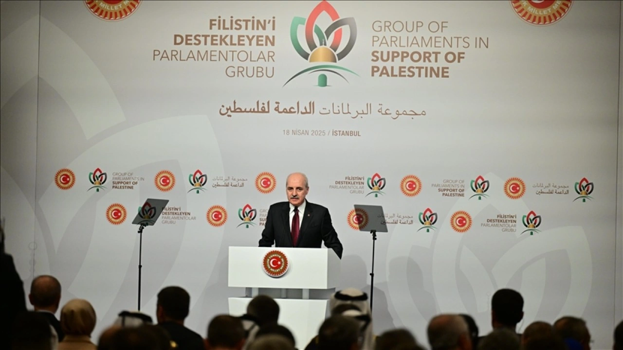 Kurtulmuş, Cumhurbaşkanı Recep Tayyip Erdoğan'ın katılımıyla Conrad Otel’de düzenlenen "Filistin’i Destekleyen Parlamentolar Grubu Toplantısı"nın açılışında yaptığı konuşmada, yaklaşık 1,5 yıldır bütün insanlığın gözü önünde koskoca bir halkı yok eden açık bir katliama şahit olunduğunu söyledi.