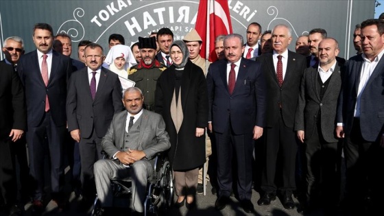 Kendisini karşılayanlarla tokalaşarak sohbet eden Şentop, Çanakkale Savaşı'na katılan Tokatlıları temsilen üniforma giyen kişilerle hatıra fotoğrafı çektirdi.