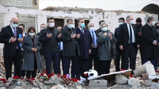 Ermenistan'ın balistik füzelerle saldırdığı ve 26 sivilin yaşamını yitirdiği Gence kentine gelen, TBMM İnsan Haklarını İnceleme Komisyonu bünyesinde kurulan "Ermenistan'ın Azerbaycan'a Saldırması ile Başlayan Gerilim ve Çatışma Sürecinde Yaşanan Hak İhlalleri ve Türkiye'deki Ermeni Vatandaşlarının Durumu Alt Komisyonu"nun üyeleri, yıkılan binaların bulunduğu alana karanfil bırakarak dua etti.