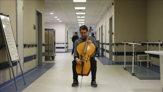 Tedavi gördüğü hastanede çellosuyla moral buluyor