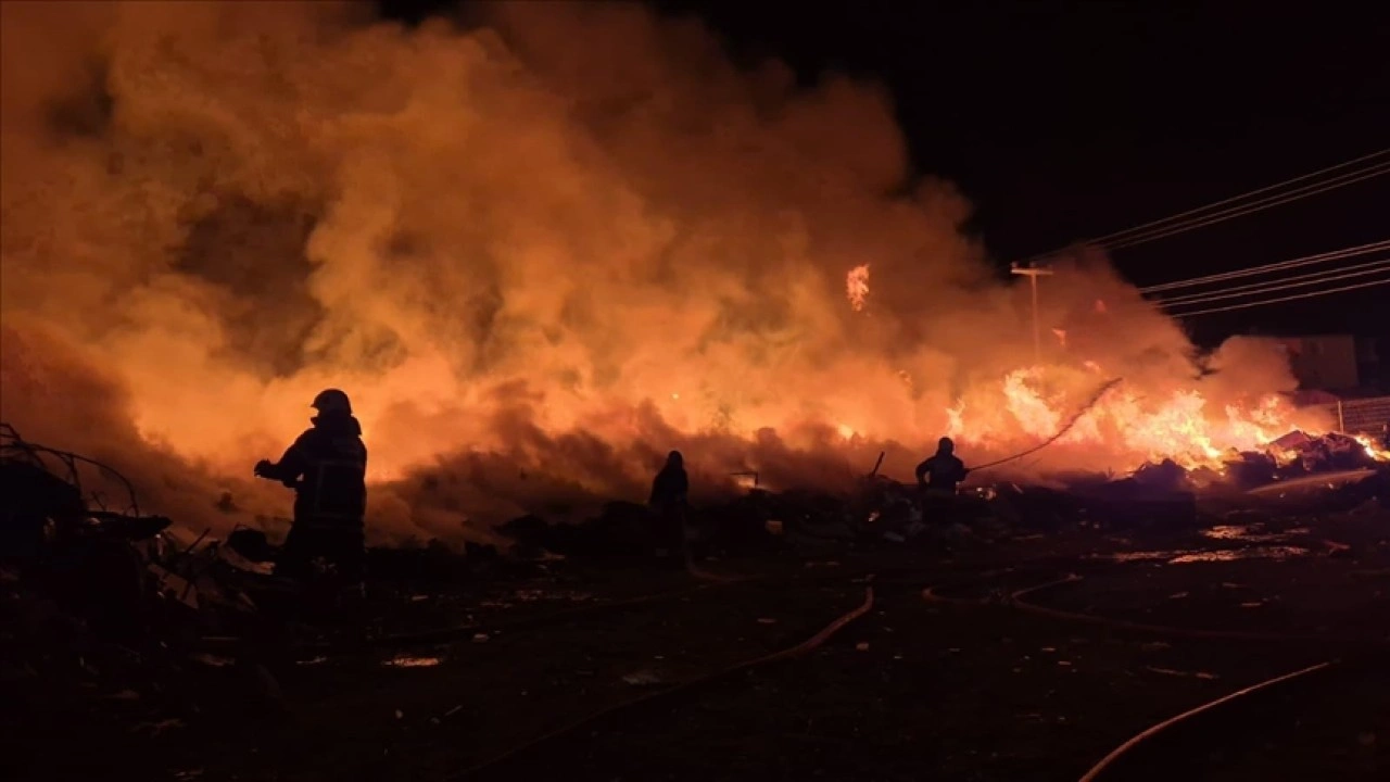 Tekirdağ'da atık toplama merkezinde çıkan yangına müdahale ediliyor