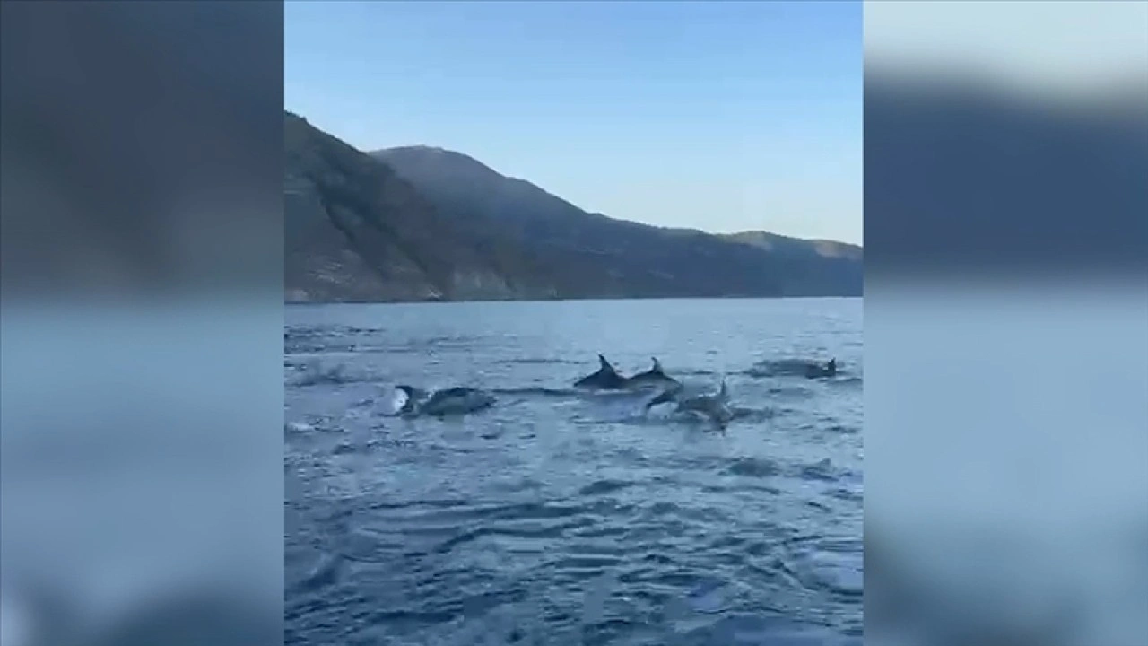 Yunusların keyifli gösterisi, cep telefonu kameralarıyla kaydedildi.