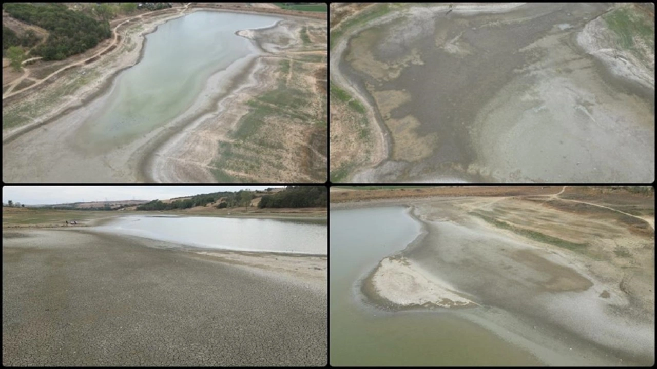 Tarımsal sulama için kullanılan gölette suyun çekildiği bölgelerde çatlaklar, bazı yerlerde adacıklar ve çamur tabakası oluştu, otlar ortaya çıktı.