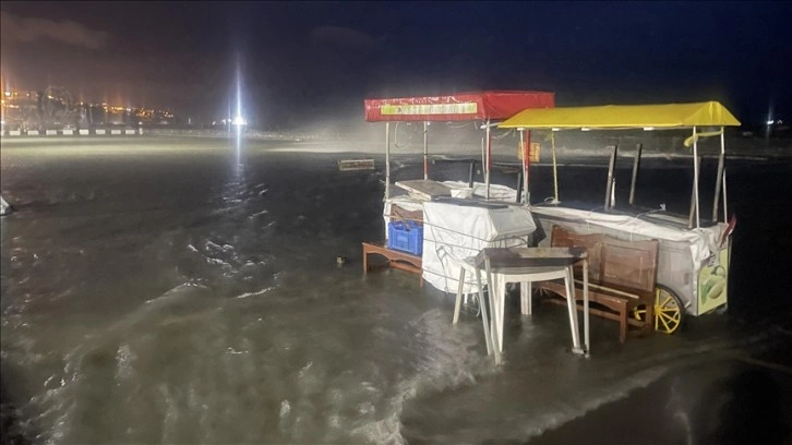 Tekirdağ'da kuvvetli lodosla oluşan dalgalar sonucu sahil şeridini su bastı