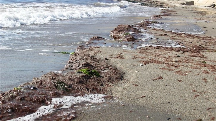Sahildeki bazı alanlar da kırmızı yosunla kaplandı.