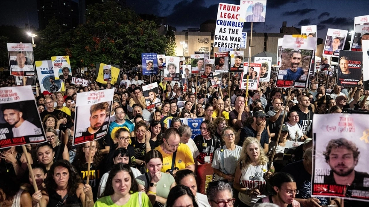 Göstericiler, hükümetten Gazze'de acil esir takası anlaşması yapılmasını ve tüm esirlerin salıverilmesini istedi.
