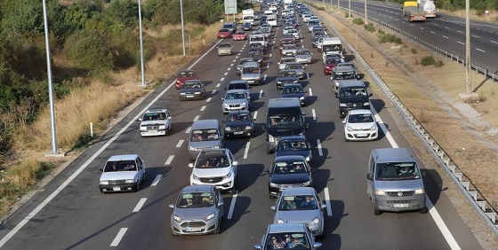 Yoğunluk nedeniyle kilometrelerce araç kuyruğu oluşuyor.